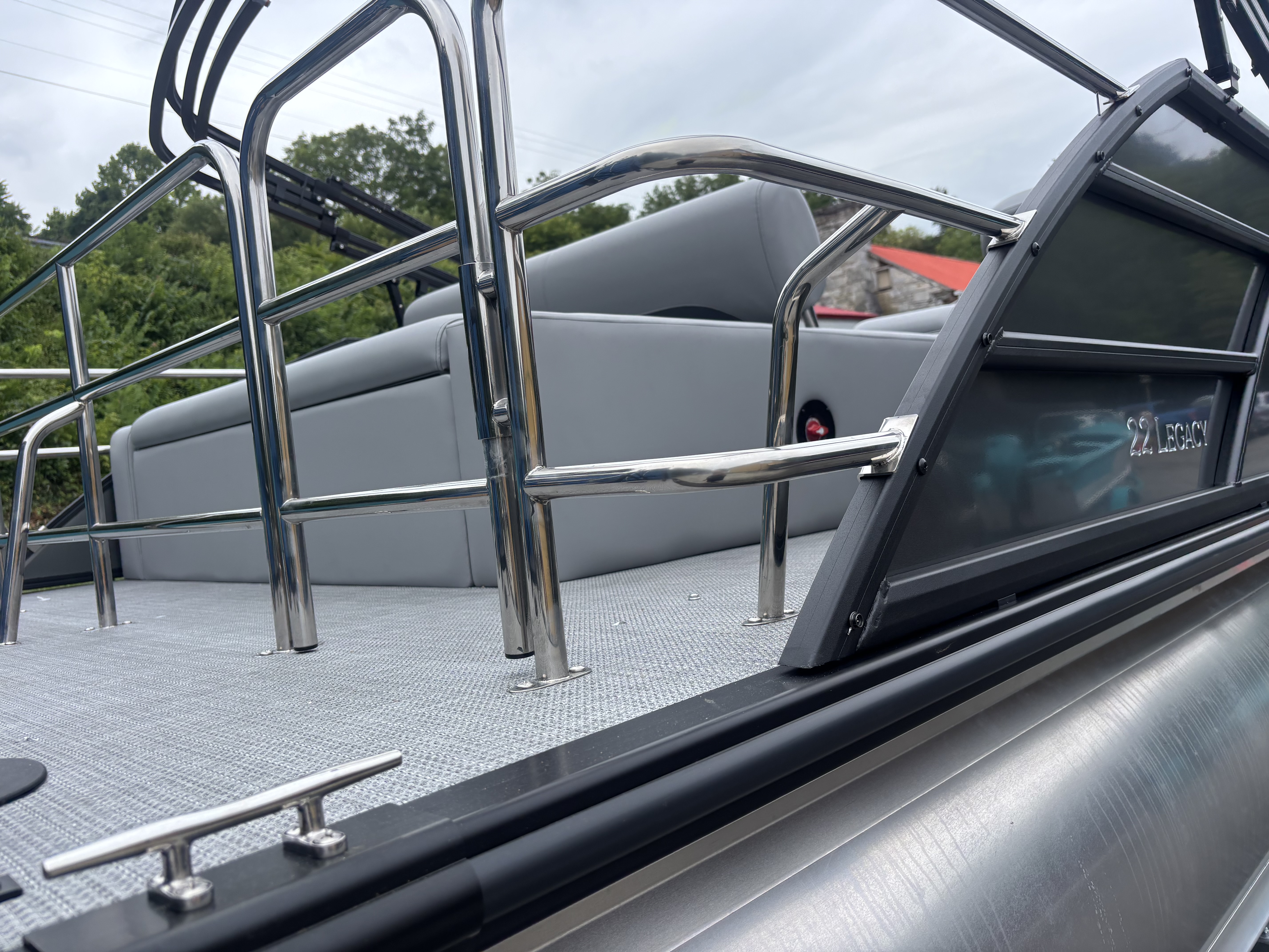 2026 Bentley Legacy 220 Swingback with Honda 150hp, cover, stereo, bimini top, performance package, Sea Star hydraulic steering, ski tow bar, blackout package